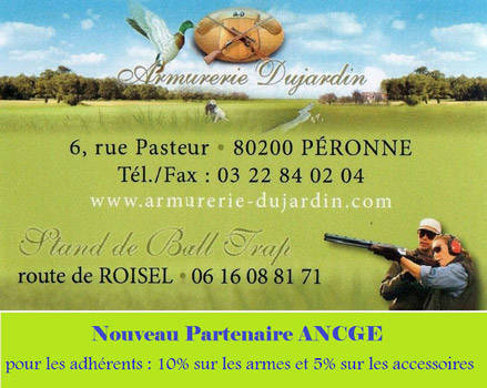 Notre partenaire L'Armurerie Dujardin applique aux adhérent de l'ANCGE sur présentation de votre carte une remise de :